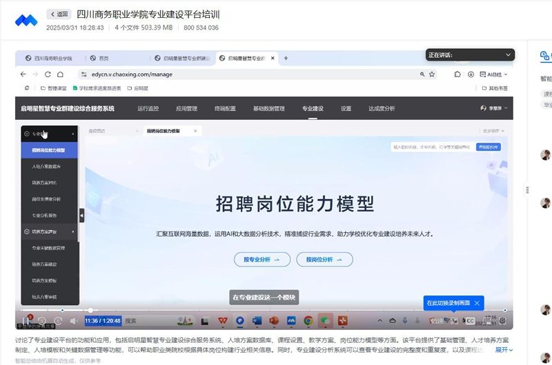 为推进高水平专业群建设,深化教育教学内涵发展,bv伟德于2025年3月31日晚通过腾讯会议举办超星平台专业建设线上培训会,百余名教师参加。培训聚焦数字化工具在专业建设中的应用,超星专家重点讲解了四大功能:一是人才培养方案智能化管理,支持方案导入、数据分析和动态调整;二是课程标准全流程管理,实现线上协同修订;三是专业图谱可视化,直观呈现课程与能力的支撑关系;四是多维成果展示平台,集成专业建设成果。这些功能为专业认证、...