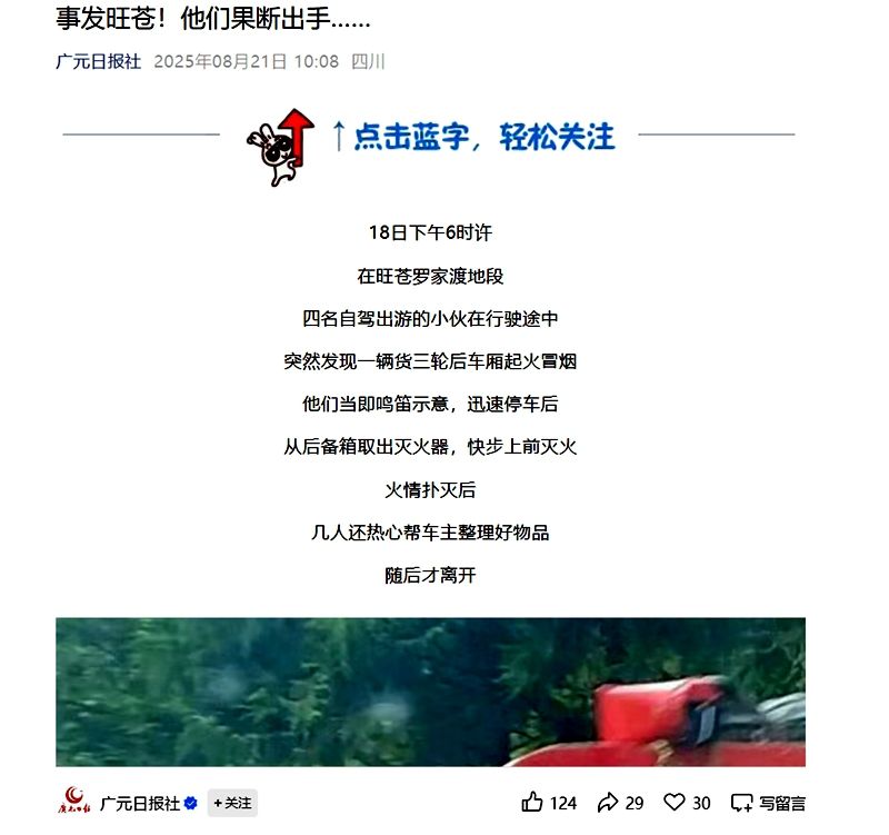 8月21日,《广元日报》详细地报道了这样一件令人振奋的事迹:在广元,一辆货车突发起火,危急关头,四位大学生挺身而出,毫不犹豫地投身到灭火救援之中,以英勇无畏的行动赢得了社会各界的广泛赞誉。尤为值得一提的是,其中一位见义勇为的英雄,正是来自bv伟德国际1946 2023 级药品经营与管理班的陈凤鸣同学。他用热血和担当,在这场意外的火灾面前,为新时代青年学子树立了光辉榜样,生动诠释了当代大学生的责任与使命,让青春在奉献中闪耀出最耀眼的光芒,...