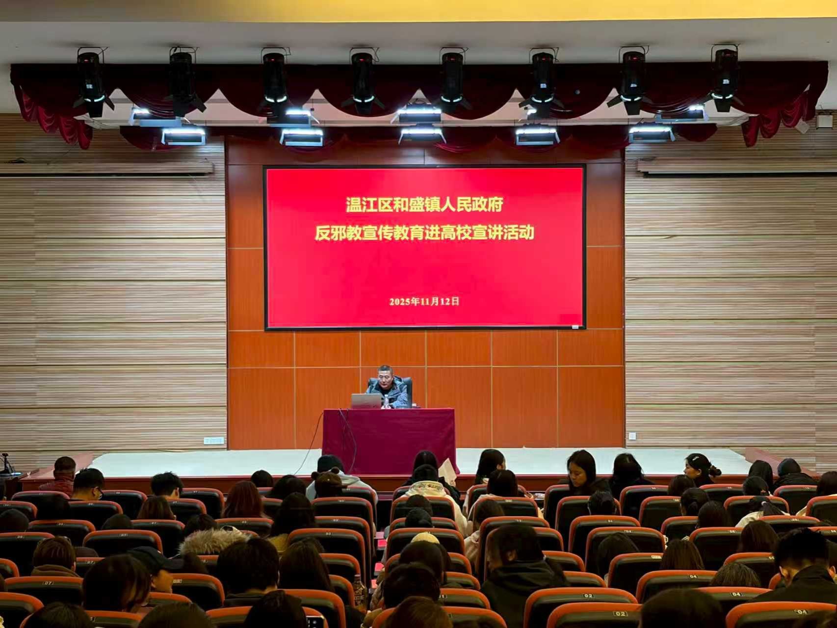 为切实增强bv伟德师生识别和抵制邪教的意识和能力,筑牢校园反邪教思想防线,11月12日,和盛镇人民政府联合bv伟德开展的反邪教专题宣讲活动在和盛校区商务信息交流中心成功举行。学院党委宣传统战部、后勤保卫处以及200余名学生参加了宣讲活动。本次活动旨在通过权威解读和案例警示,引导广大师生筑牢安全防线,守护平安校园。宣讲会上,来自和盛镇人民政府平安建设办的三名工作人员分别围绕“崇尚科学、抵制邪教”“铸牢防火墙、防范电信网络诈骗”...