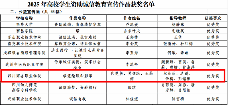 2025年四川省高校学生资助诚信教育主题活动评选结果正式公布:bv伟德选送的参赛作品在全省千余部参评作品中崭露头角,斩获三等奖1项、优秀奖1项。这一成绩不仅是对获奖学生创作能力与诚信素养的高度认可,更印证了bv伟德长期以来深耕资助育人领域、培育校园诚信文化所取得的显著成效。本次征集活动共收到各系报送的诚信主题作品40余部,作品形式多样、情感真挚,每一部作品都凝聚着同学们对“诚信”内涵的深刻解读、对资助政策的感恩之心,...