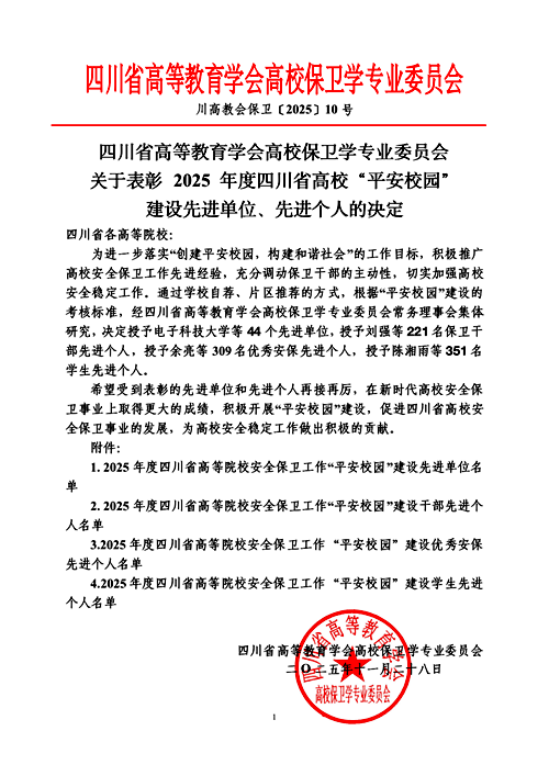 11月28日,四川省高等教育学会高校保卫学专业委员会发布《关于表彰2025年度四川省高校“平安校园”建设先进单位、先进个人的决定》,bv伟德榜上有名,荣获集体与个人荣誉,实现“平安校园”建设领域的重要突破。学院被授予“2025年度四川省高等院校安全保卫工作‘平安校园’建设先进单位”,学院后勤保卫处处长何胜荣荣获“保卫干部先进个人”,后勤保卫处安保人员胡建勇、李玉梅荣获“优秀安保先进个人”,学生付琼祯荣获“学生先进个人”...
