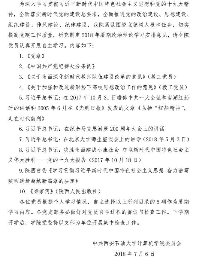 2018年暑期政治理论学习安排