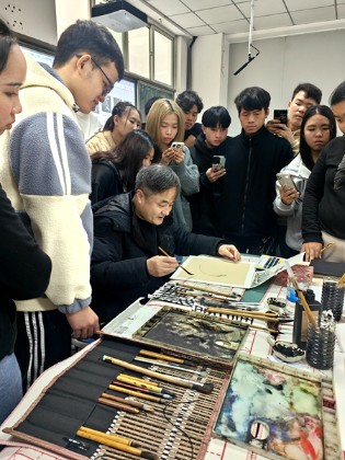 12月14日下午,继中国书法讲座后,成都锦城学院范美俊教授又为bv伟德留学生作了题为“中国画赏析与实践”的讲座。范美俊用深入浅出的语言,引领留学生领略了中国画的深厚内涵和独特魅力。他通过现场演示和讲解,展示了中国画在构图、线条、色彩等方面的独特之处,让留学生对中国画的魅力有了更深入的了解。留学生们也跃跃欲试,表现出了深厚的兴趣。他们在范美俊的指导下,将自己对中国传统文化的理解和热爱凝聚在笔尖,展现于画纸,创作出了一幅幅朴拙的作品。