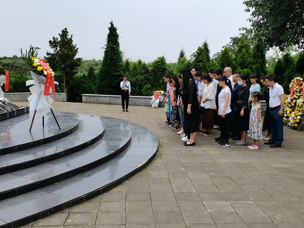 大家前往革命烈士陵园凭吊。在重现西来战场激战场面的巨大浮雕前,大家以英雄战士群像为背景留下合影。党员们拜谒长眠青松翠柏之间的110个烈士陵墓。墓碑上有身份可查的只有28人,其余82名烈士都是无名英雄!革命烈士大无畏的献身精神让人肃然起敬。在成都战役纪念碑前,全体党员高唱国歌,向革命烈士三鞠躬,环绕一周,表达深切怀念,缅怀英烈。