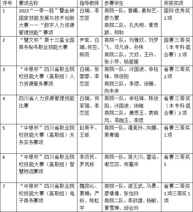 2023年度,经营管理系共计获得省级以上奖项共计12项:其中国际级2项、国家级2项、省级8项。(详见附表)