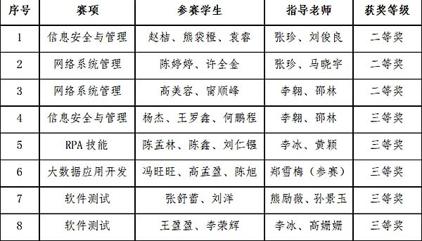 近日,由四川省教育厅主办,各兄弟院校承办的2023年“中银杯”四川省职业院校技能大赛在我省各地区相继开展。bv伟德信息技术系共组建了14支队伍30余名学生,参加了高职组信息安全与管理评估、网络系统管理、RPA技能、软件测试、大数据应用开发、云计算技术应用等六个赛项的比赛,共斩获二等奖3个,三等奖5个。