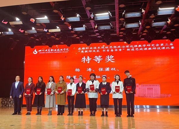 陈星月荣获“思想道德与法治”课程新进教师说课比赛特等奖;牟浠榕荣获“形势与政策”课程新进教师说课比赛一等奖;吴佳芮荣获四川省高校“思想道德与法治”课教学竞赛二等奖;胡静荣获“习近平新时代中国特色社会主义思想”课程新进教师说课比赛二等奖。