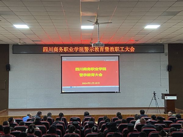 1月15日,学院纪委组织召开警示教育大会,首次以直播会议和“两区三馆”的方式面向全体教职工,在文家校区学术交流中心、和盛校区商务信息交流中心及第二学术报告厅召开,学院领导干部、普通教师、行政人员、后勤保障人员等600余人参加。