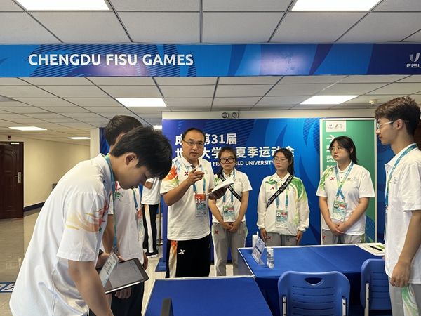 于学考同志于2023年5月加入到成都大运会交职院排球场馆中心竞赛组,先后承担运动队代表团服务主管及竞赛技术运行主管任务。在大运会期间,该同志敢于担当、服务大局意识强,始终坚定以习近平新时代中国特色社会主义思想为指导开展各项工作,积极探索管理新模式取得新突破,确保推进训练赛和比赛工作的顺利开展,为成都第31届世界大学生运动会成功举办提供了竞赛技术运行保障,展示了“商院人” 热爱大运、服务大运、管理大运、参与大运的无私奉献的精神,为学院的发展作出应有的贡献。