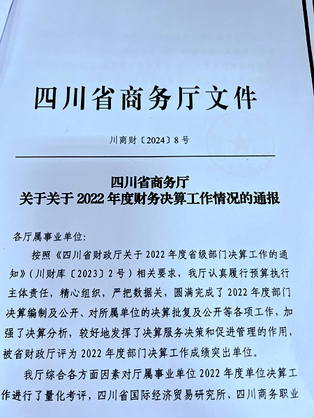 学院财务资产管理处履职尽责,严把数据关,圆满完成了2022年度决算编制及公开等各项工作,近日获四川省商务厅通报表扬。