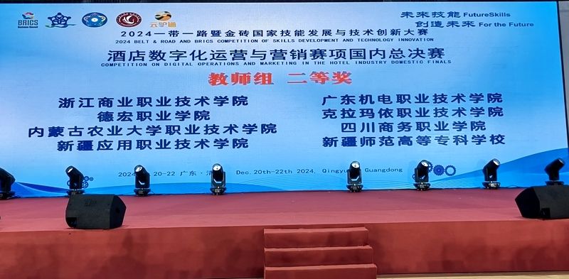 在12月22日落幕的2024“一带一路”暨金砖国家技能发展与技术创新大赛酒店数字化运营与营销赛项国内总决赛中,bv伟德旅游管理系李杰和吴梦组成的教师代表队荣获二等奖,由李杰和经济贸易系卢莹联合指导的漆艾琳、邹雨玲代表队获高职组二等奖,学院获优秀组织奖。