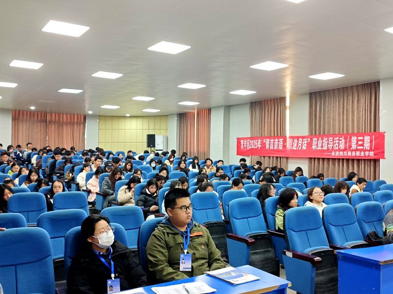 3月19日,由成都市青羊区就业服务中心、学院招生就业处联合主办的“2025年青羊区公共就业服务进校园”专场活动在学术报告厅举行。本次活动以“社会及科技变革下的职业发展”为主题,聚焦当前就业市场趋势与青年成长需求,通过政策解读、企业宣讲与职业指导,助力学生把握就业机遇,规划职业未来。活动吸引了近200名在校学生参与。