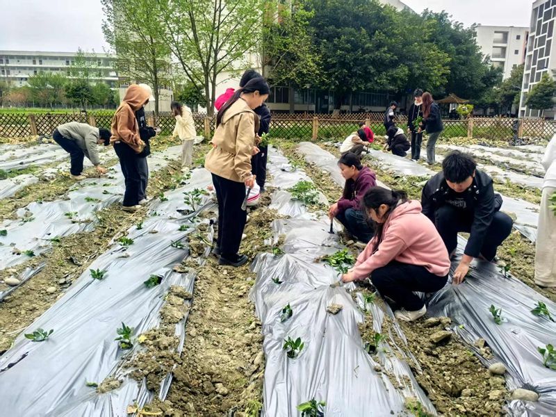 翻开这片土地的记事本,每一页都浸透着青春的汗水。三月的田地还浸在冬的余威里,休闲体育专业的小伙子们趴在冰冷的泥地里徒手捡石块,指甲缝里嵌满黑泥;六月骄阳似火,会计专业的姑娘们坚持给番茄修枝,晒脱皮的后颈贴着湿透的衣服。最难忘那个光线逐渐暗淡的傍晚,为给藤蔓太长的贝贝南瓜搭上架子,市场营销班的同学们打着手电在与时间赛跑,在汗流浃背中,最终搭好了南瓜架子。这些过去连韭菜、麦苗都分不清的年轻人,现在能精准判断每种作物需水量,手掌的老茧比任何PPT都更有说服力。