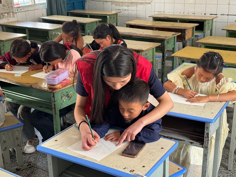 为助力乡村儿童成长,在丙底镇九年一贯制学校,志愿者们为可爱的同学们带来了一份份饱含关切与期许的礼物,并精心策划设计了“六个一”帮扶活动:欢快的儿歌旋律,唤醒孩子们脸上纯真烂漫的笑容;飞扬的篮球身影,迸发少年们心中无限蓬勃的激情;悠扬的古诗诵读,在耳畔铸就起浸润心灵的文化长廊;轻盈的舞蹈姿态,舞出校园里满是朝气的活力青春;斑斓的绘画笔触,绘就孩子们心中对未来的美好梦想;精彩的励志电影,展现出光影世界的向上和希望。