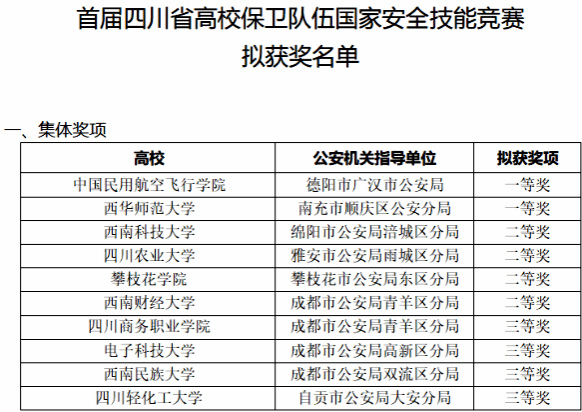 10月20日,四川省教育厅公示了首届四川省高校保卫队伍国家安全技能竞赛拟获奖名单。在这场云集了全省141所高校精英队伍的激烈角逐中,经过片区复赛的严格筛选,最终21所高校脱颖而出、会师决赛。bv伟德代表队在决赛中发挥出色,最终荣获决赛三等奖。