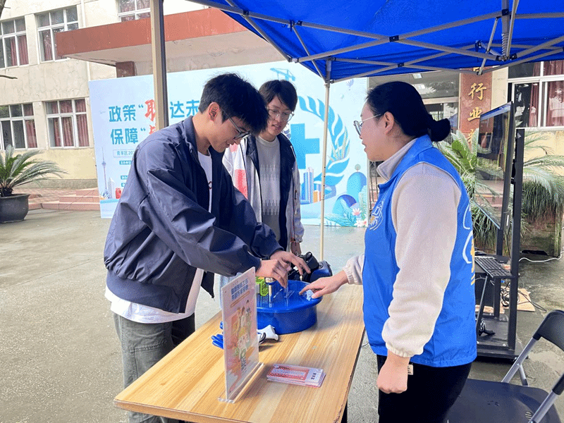 室外区域则打造“工伤预防实景课堂”,成为活动亮点。学生通过VR设备沉浸式模拟应急逃生场景、体验触电风险,直观感受工伤危害;社保咨询区通过展板展示、“四川人社”APP操作演示,手把手指导业务办理;联动银行专区还提供即时社保卡办理服务,同步讲解社保卡在就医、缴费等场景的应用,让学生一站式了解社保实用技能。