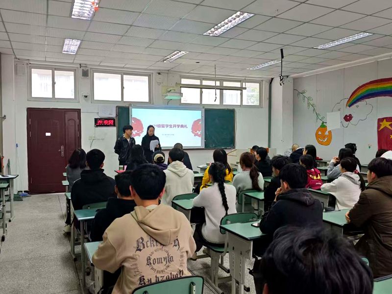 11月5日下午,学院 2025 级老挝留学生开学典礼顺利举行。学院副院长康璐、学生处、教务处、经济贸易系、旅游管理系、国合中心负责人及相关教师代表出席。