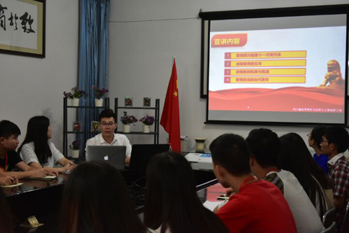 本次分享会由四川省优秀青年马克思主义者培养工程第一届大学生班学员、电子科技大学博士、“创青春”全国大学生创新创业大赛全国金奖获得者熊杰同学担任宣讲人,各部门学生干部代表参与了学习交流。