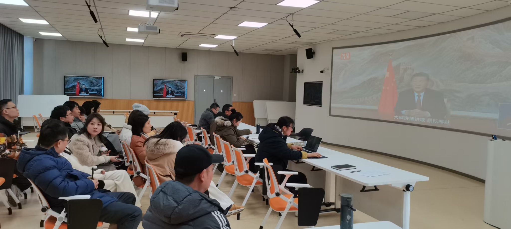 会议第一项议程为第一议题学习,全体党员集中重温习近平主席二 0 二六新年贺词。通过观看学习,大家深切感受到国家发展的万千气象与个人肩负的使命担当,纷纷表示将把贺词精神转化为工作学习的强大动力,立足岗位为教育事业发展贡献力量。