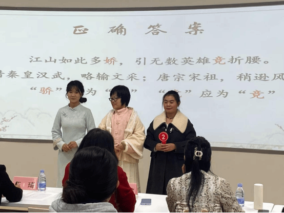 复赛采用团队竞赛形式,设置四大环节,兼具知识性与趣味性。“诗词勘误”考验选手对经典诗句的熟悉程度,要求在两分钟内精准辨误并修正;“诗词寻踪”以十二宫格汉字拼图为题,选手争分夺秒还原诗句,现场气氛紧张热烈。“Emoji表情猜诗歌”环节创意十足,选手通过表情符号抢答出“唯有牡丹真国色,花开时节动京城”等名句,赢得阵阵掌声。压轴环节“飞花令”更是精彩纷呈,各队配合默契、才思敏捷,展现出扎实的诗词功底与团队协作能力。