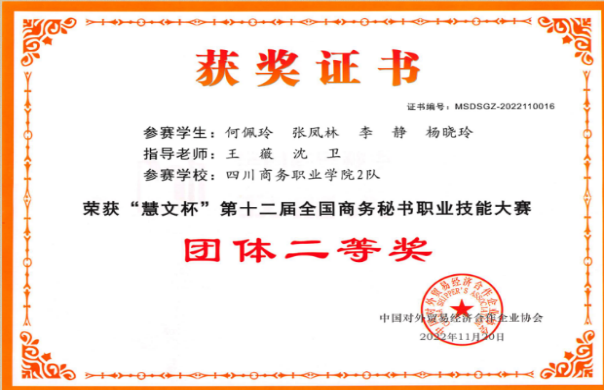 11月19日,“慧文杯”第十二届全国商务秘书职业技能大赛在南京举行。大赛由中国对外贸易经济合作企业协会主办,全国商务秘书与行政助理专家委员会和金陵科技学院承办。根据常态化疫情防控要求,本届大赛大胆创新竞赛形式,采用“线下+线上”相结合的形式进行,参赛规模再创新高。来自全国23个省、市、自治区83所本专科院校的155支参赛队,近千名师生相聚“线上”,同台竞技。经过激烈角逐,bv伟德国际1946二队获团体二等奖,一队获团体三等奖。