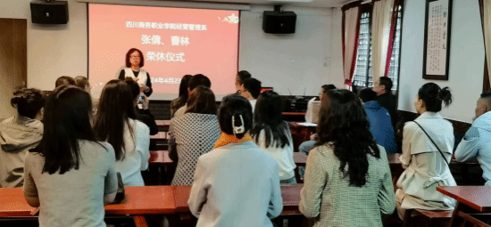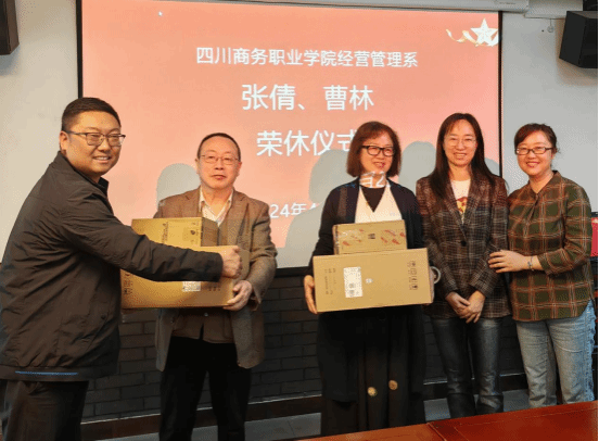 4月23号,经营管理系2024年度退休教职工欢送会在和盛校区召开。退休教师张倩、曹林、学院副院长康璐、经营管理系主任王琦、系党总支书记杨洪、全系教师参加了会议。会议由经营管理系主任王琦主持。