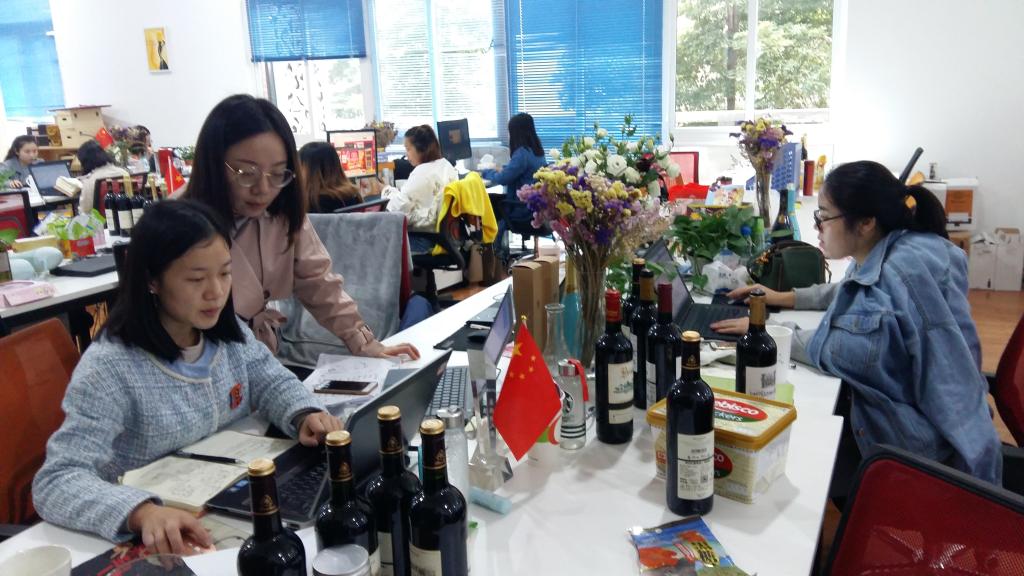 梁栋主任与萄客体验店实习学生亲切交流