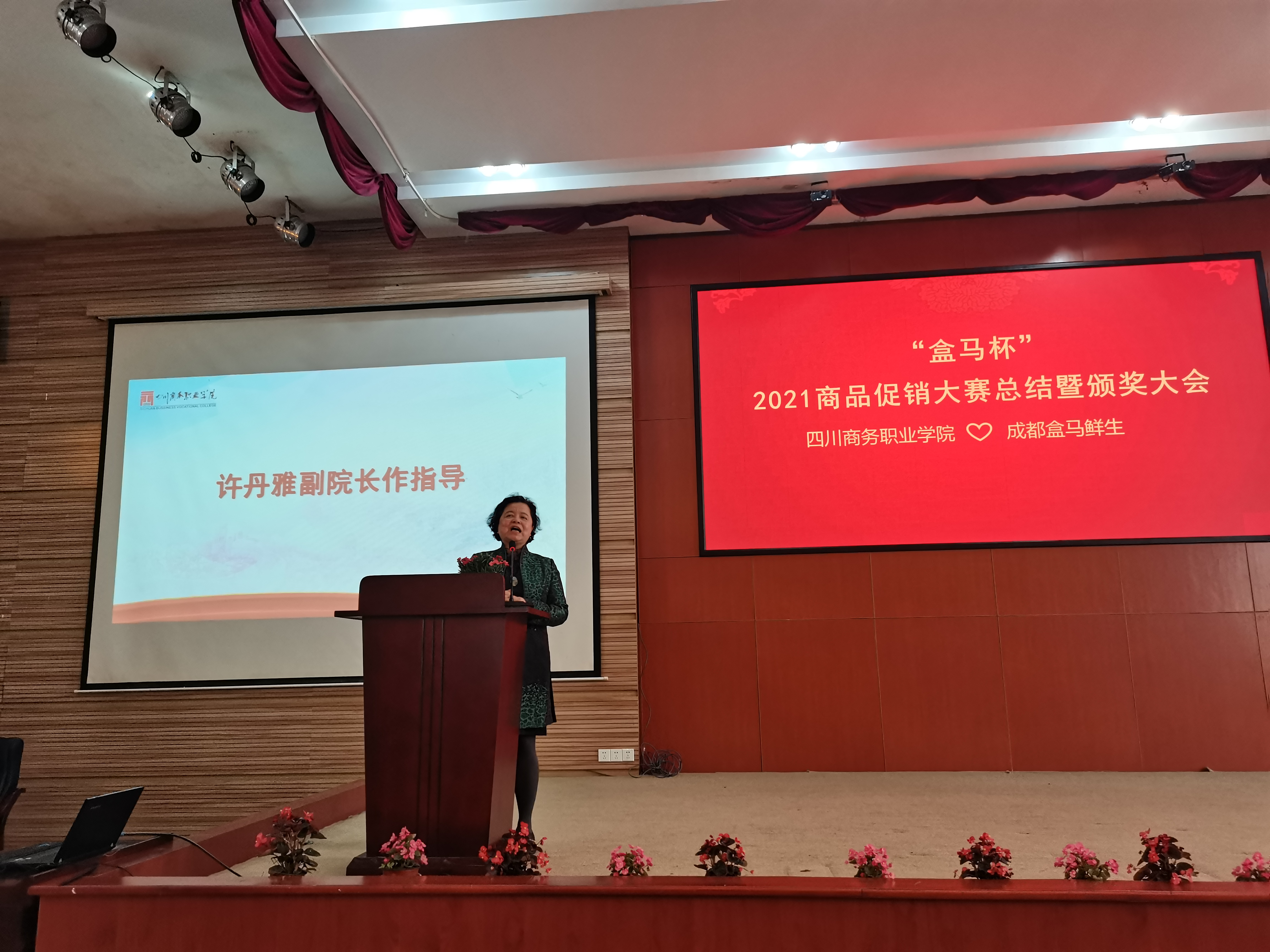 4月13日下午,经营管理系举办“盒马杯”商品促销大赛总结会暨颁奖仪式。参会嘉宾包括盒马(中国)有限公司全国校企合作HRG赵佳琼、盒马(中国)有限公司四川校企合作HR冯小静、盒马(中国)有限公司温江店运营副店长郭伟、bv伟德国际1946党委委员副院长许丹雅、bv伟德国际1946实践教学中心主任罗小东、bv伟德国际1946经营管理系主任梁栋、bv伟德国际1946经营管理系副主任王琦、bv伟德国际1946经营管理系物流专业负责人李贤明、bv伟德国际1946经营管理系连锁专业老师、辅导员老师。