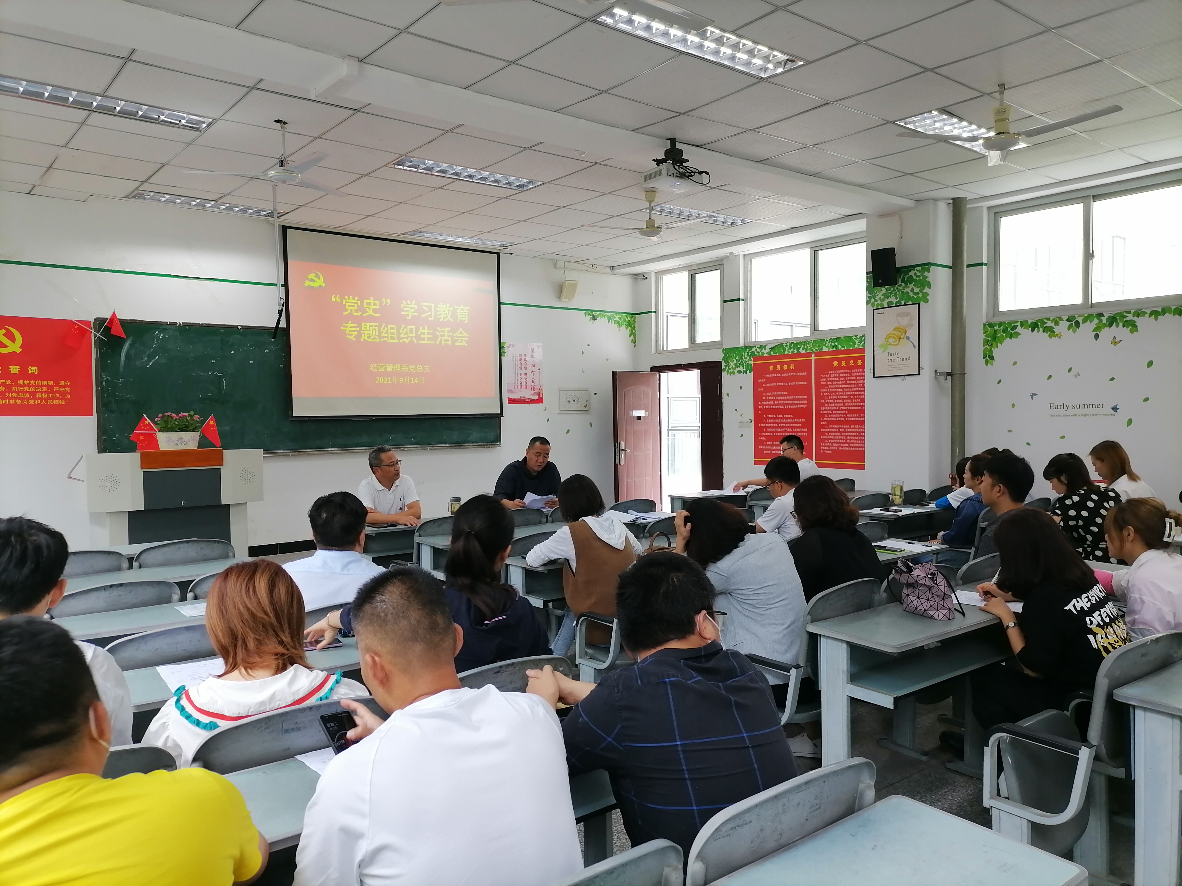 9月14日下午2:00,经营管理系党总支在1教202教室召开党史学习教育组织生活会,会议由总支书记郑海波主持。
