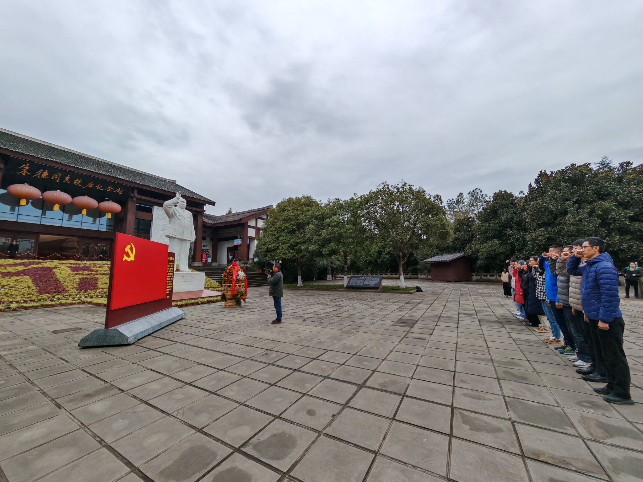 同志们又驱车前往朱德同志故居开展敬意教学和现场教学活动。在朱德纪念馆广场,全体列队肃立,伴随着《献花曲》,礼兵敬献花篮,全体师生向朱德元帅三鞠躬致敬,以此表达对开国元帅的无限敬意。全体党员在朱德同志塑像前,面向党旗庄严宣誓。