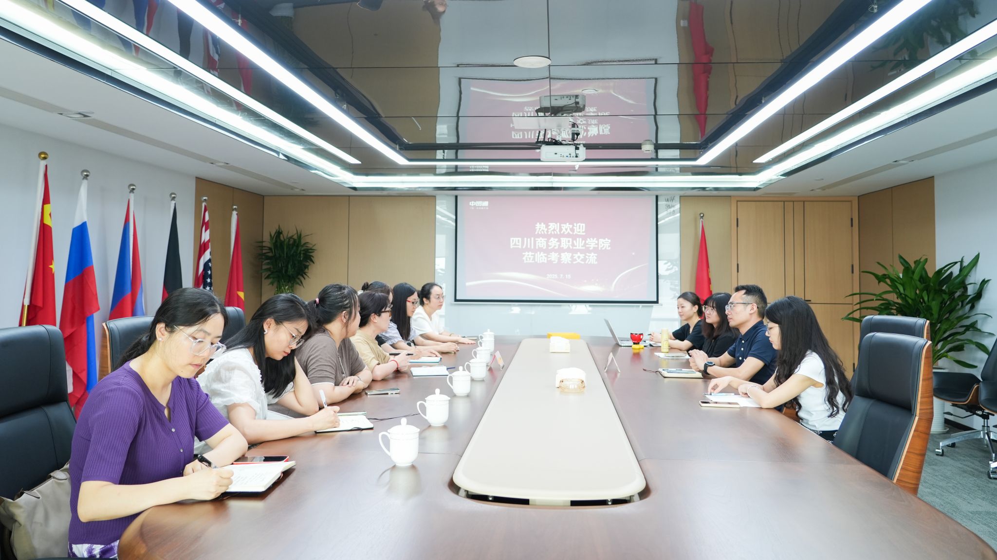 为深化产教融合,精准对接产业需求和人才培养,7月15日,bv伟德国际1946经济贸易系商务英语专业团队赴成都中贸通信息科技有限公司开展了一场聚焦专业核心课程建设的研讨会。中贸通公司总经理助理陈鸿、产教融合牵头人周瑶等,与学院商务英语专业负责人杜芳林及跨境电商、商务翻译、商务写作、商务英语视听说等核心课程负责教师齐聚一堂,共商产教融合新路径。