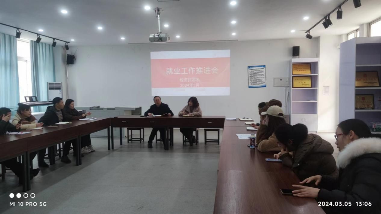 会议特别强调做好经济贸易系2024届毕业生就业工作一定要做到四要:一要早起步,结合就业形势新变化,早研判、早谋划、早部署、早行动,齐心协力共同做好毕业生就业工作;二要快推进,就业工作系党政同责同谋划,要形成全系联动、相互统一的工作机;三要提质量,加强学生就业的主动性,高质量提供就业岗位、高质量访企拓岗,高质量提供就业指导服务;四要抓长效,完善“招生-人才培养-就业”联动机制,始终把“促就业、稳就业、保就业”作为立德树人的重要环节、重大任务,构建长效机制,创新思维解难题。