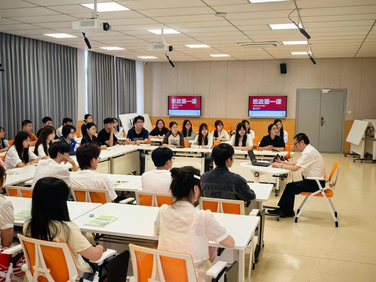 开学典礼落幕之后,唐柯书记走进经济贸易系2025级跨境电商4班的教室,以“商道铸魂,匠心报国”为主题,为同学们讲授了意义非凡的思政第一课。