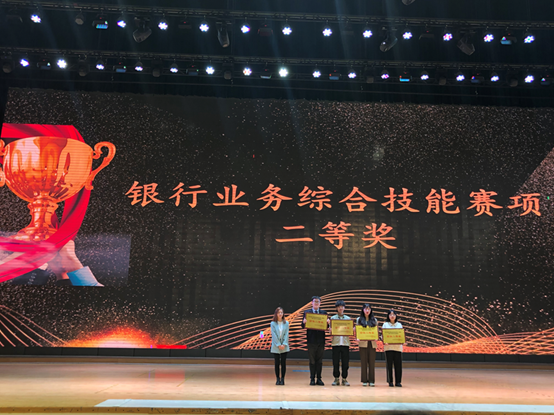 我系学生赵臻、代莲、彭静、杨劲涛在指导老师赵妍清、张越的带领下代表学院参加银行业务综合技能赛项,经过五个小时的鏖战,最终荣获团体二等奖。