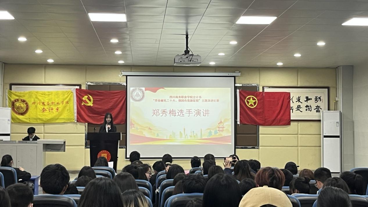 4月6日晚上,会计系在文家校学术报告厅开展“青春献礼二十大、强国有我新征程”主题演讲比赛。会计系主任刘能良、党总支书记周发强、副主任杨晴、团总支书记刘开伟、院学生处叶茂林、专职组织员李静娜、辅导员、学生代表参加了本次演讲比赛。