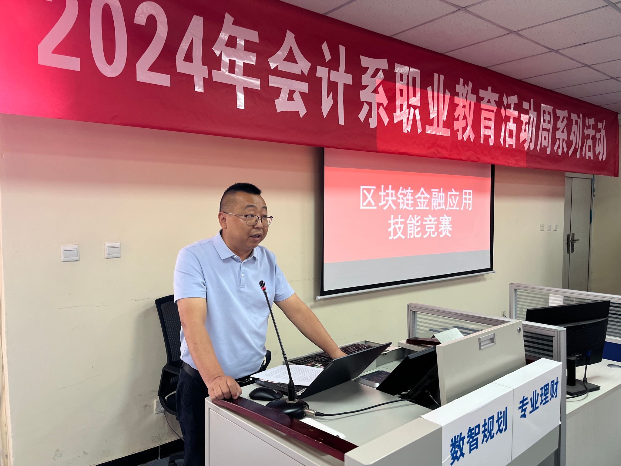 启动仪式上结束后,主持人宣布会计系职业教育活动周系列活动正式开始,随后首场区块链技术应用赛项开始了职业技能展演、展示,比赛中展现出同学们以学立一生之本、赢美好生活,促建功立业的一技之长。