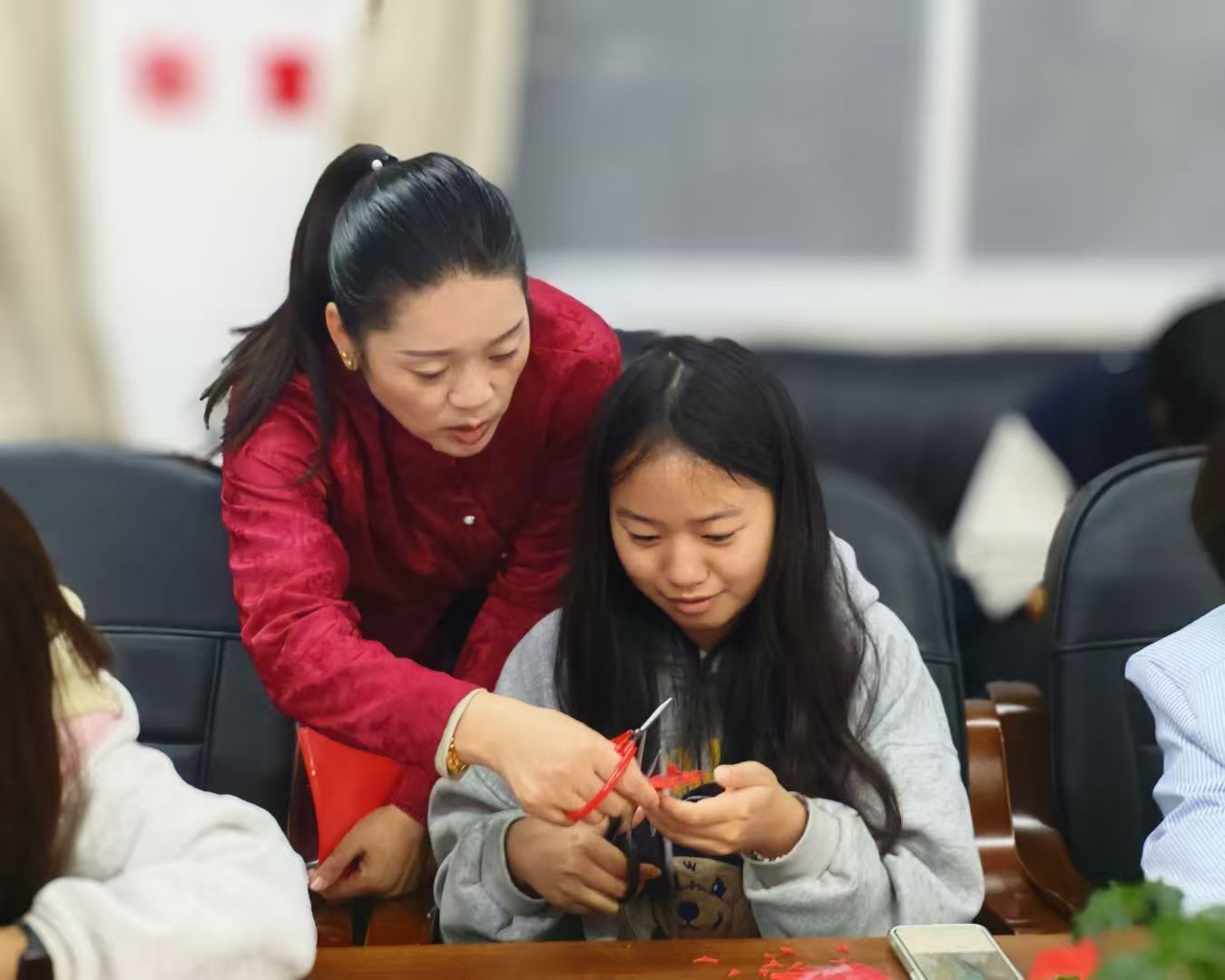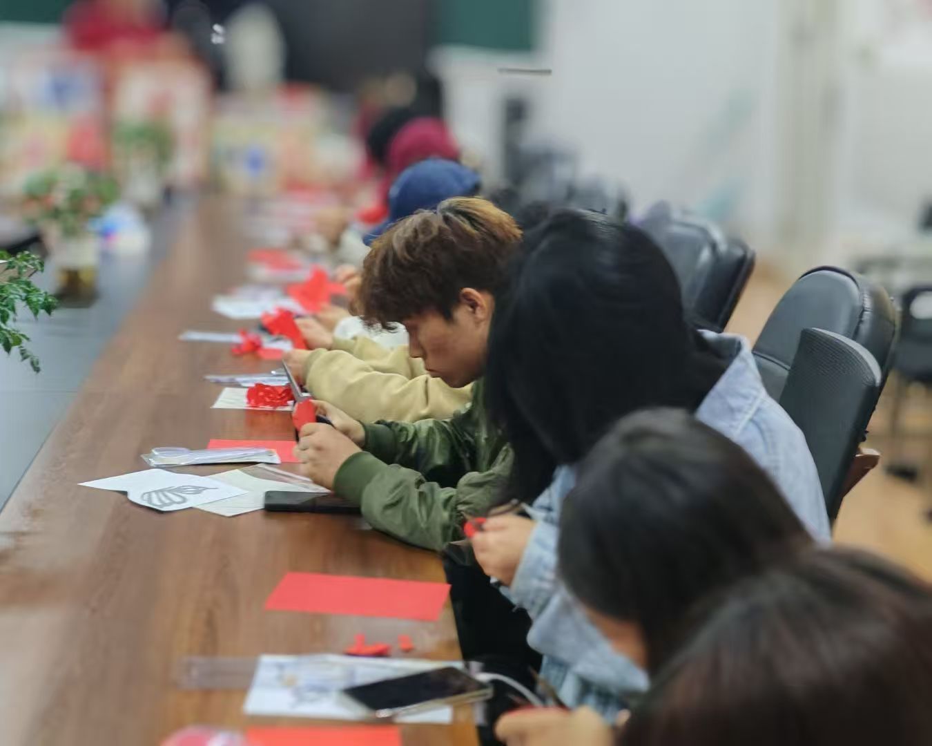 指尖裁得丹红韵,非遗薪火进校园。会计系“一纸裁春秋·一剪承非遗”非遗剪纸进校园活动在文家西区1103教室圆满举行。同学们在新都区区级剪纸工匠董凤燕老师的带领下,以剪刀裁春秋,以红纸剪流光,亲手触碰非遗技艺的细腻脉络,感受传统文化流淌的温度。
