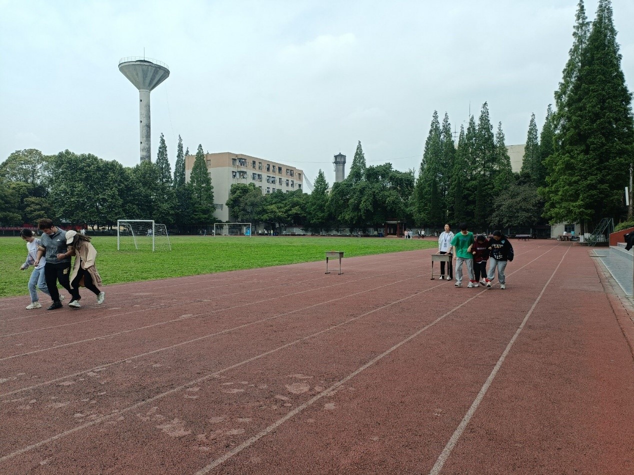 “两人三足”比赛则是以班级为单位三人一组,每班两组,一个班级为一队,两两进行比赛,给我们带来了一场精彩的比赛。