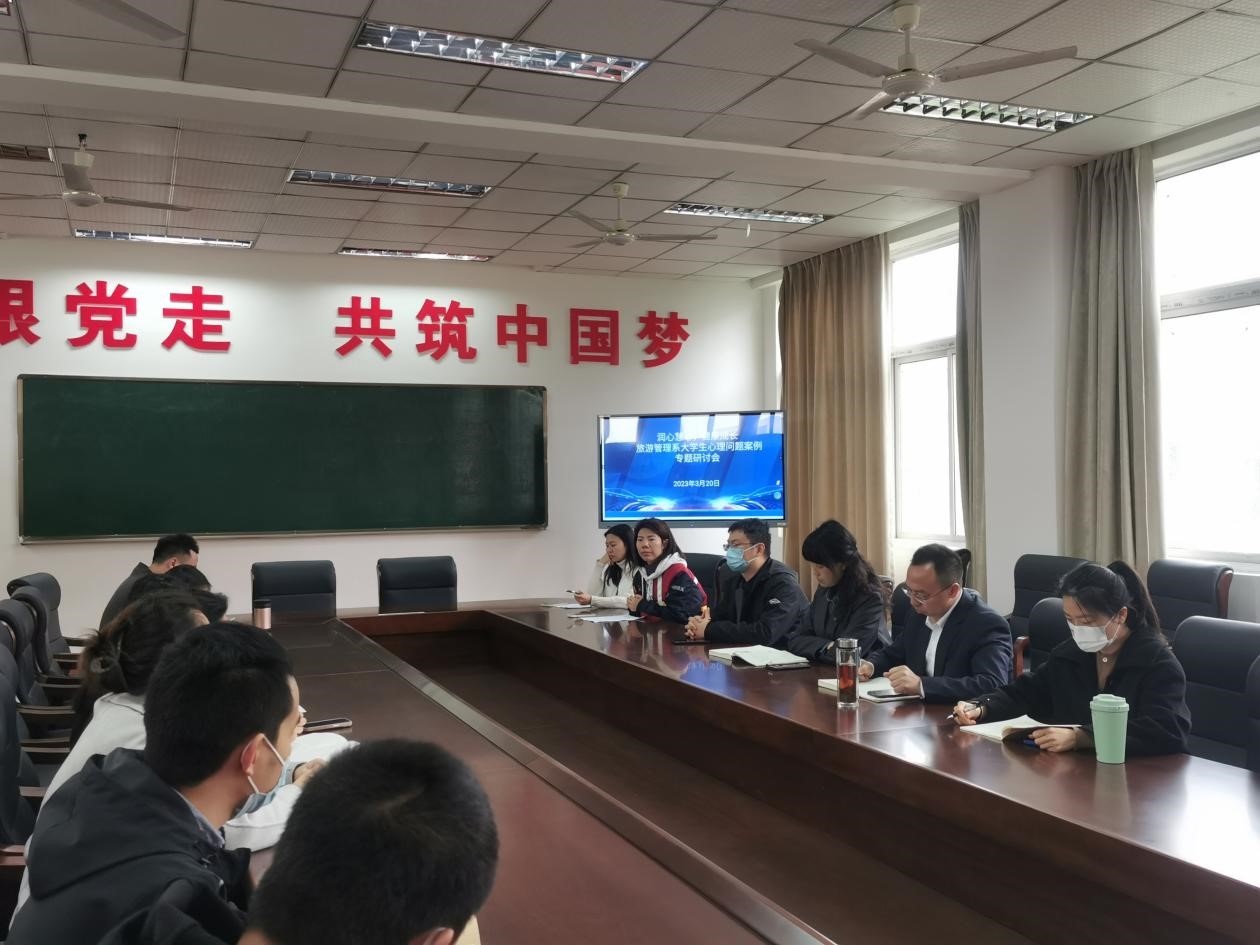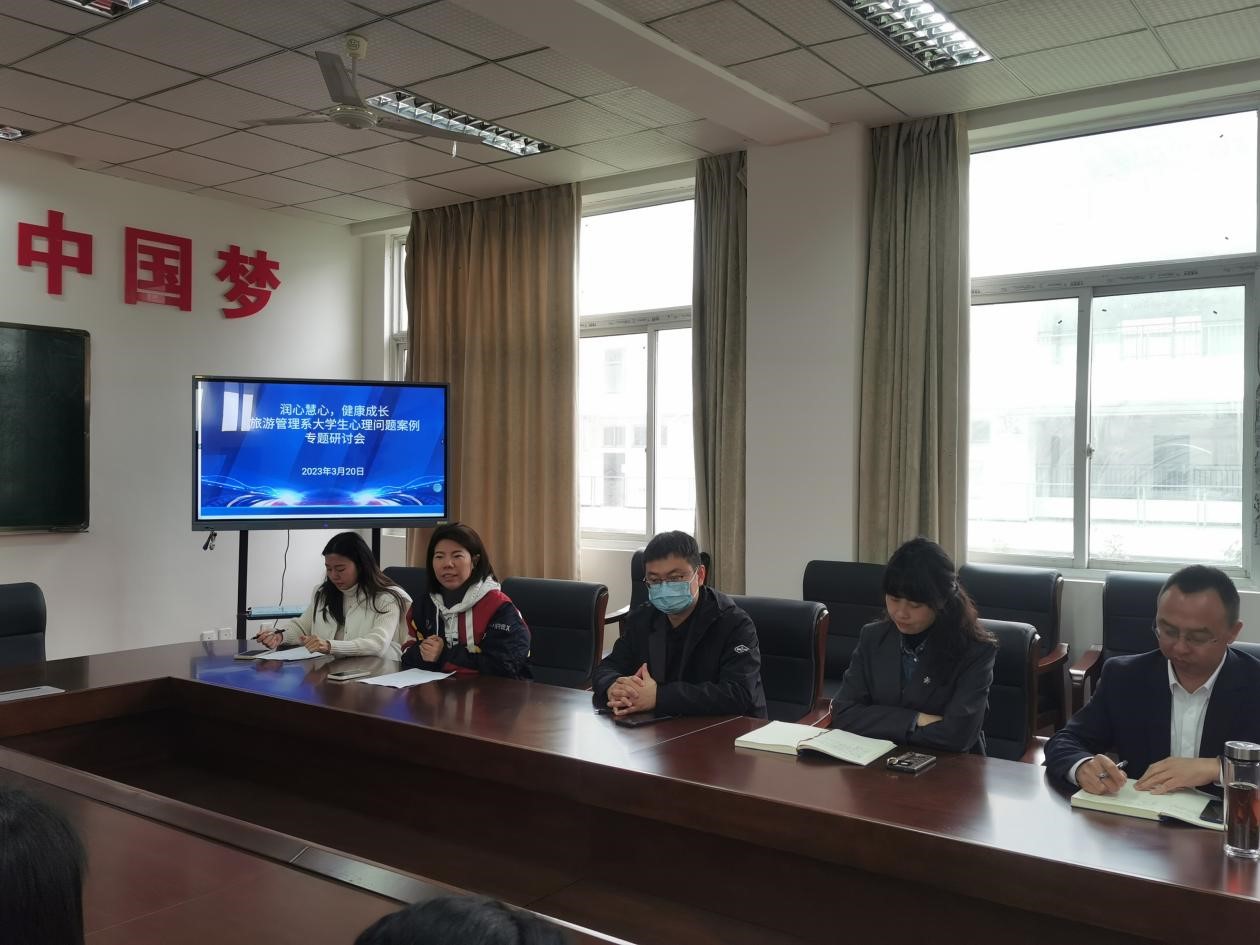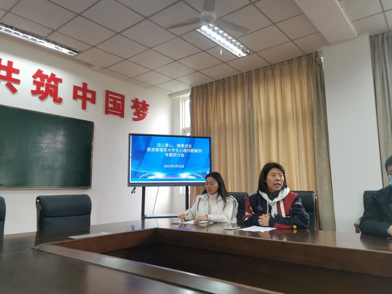 3月20中午,旅游管理系于6教304会议室举办“润心慧心,健康成长”大学生心理问题案例专题研讨会。研讨会邀请了学生工作部心理健康中心姚又丹和唐璐老师进行点评指导,旅游管理系党总支书记陈根元主持会议,系主任张莉、副主任沈超、全体辅导员、专业老师代表参会。