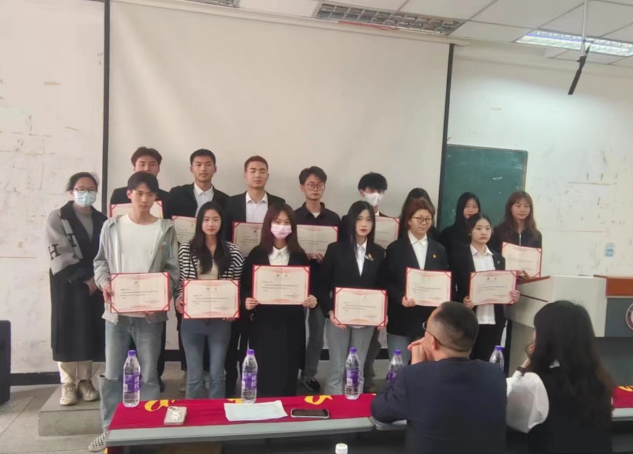 沈超副主任和车洁老师为优秀学生会干事颁发聘书