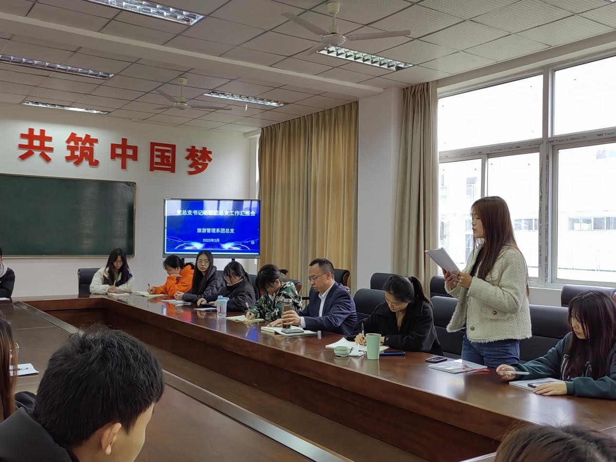 为进一步加强旅游管理系团总支自身建设,提高学生干部队伍整体素质,3月20日下午,旅游管理系在6教304会议室举办了党总支书记听取团总支工作汇报会。系党总支书记陈根元、团总支书记车洁、学生会全体同学参加了会议。会议由车洁主持。