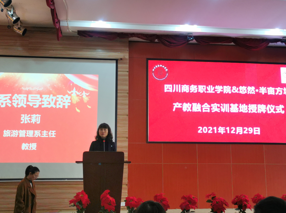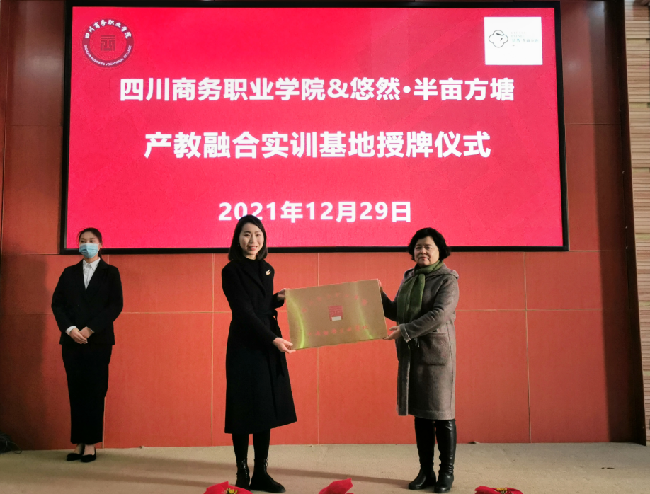 12月29日,bv伟德国际1946与半亩方塘产教融合实训基地授牌仪式在和盛校区隆重举行。成都悠然半亩方塘酒店管理有限公司运营副总王范玲,学院党委委员、副院长许丹雅教授,教务处处长黄松教授,旅游管理系领导,以及校企双方代表出席授牌暨师资互聘仪式。