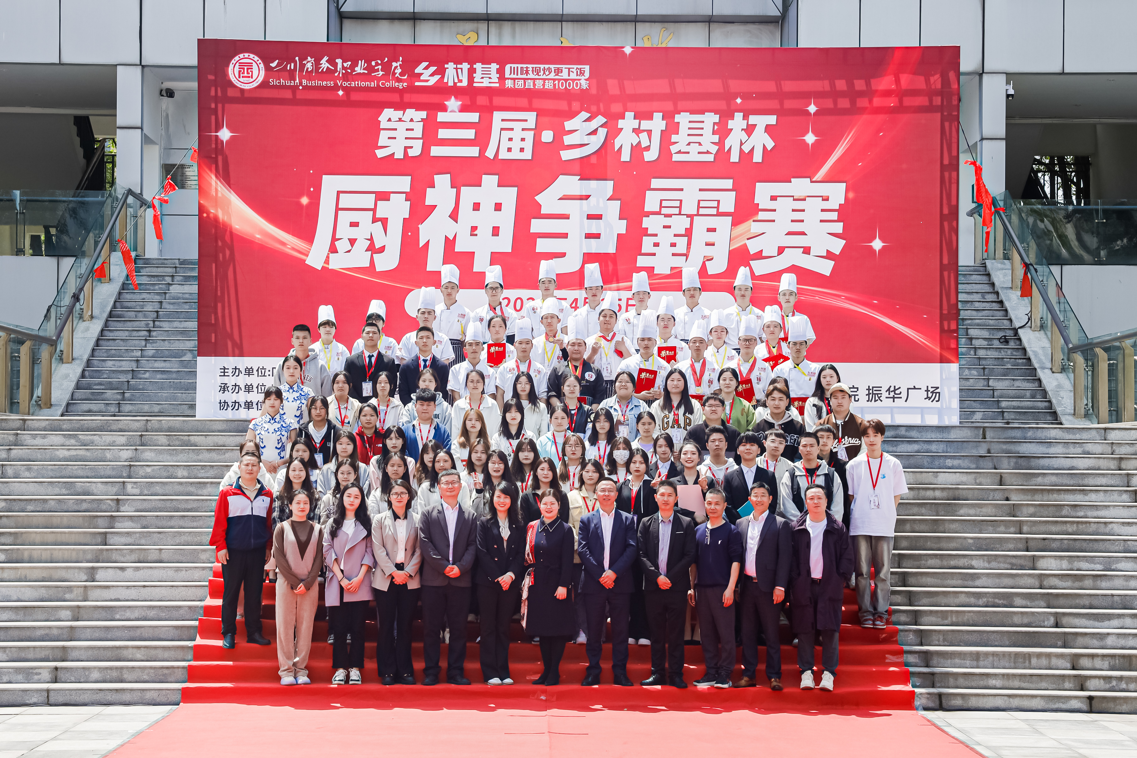 4月25日上午9:00,由学院工会委员会、党委宣传统战部和旅游管理系承办,四川乡村基有限公司协办的第三届“乡村基杯”厨神争霸赛在学院振华广场如期举行,副院长康璐、乡村基集团品牌四川公司区域总经理赵晓燕、人力资源总监陈容、区域总厨曾照祥、田海、训练部经理伍艳、李丹、唐彬以及学院相关职能部门负责人出席了本次大赛。
