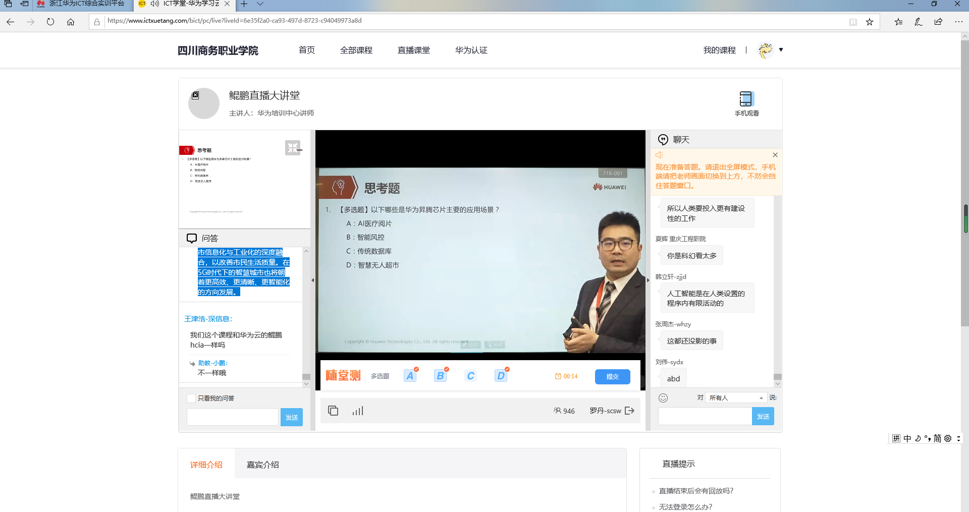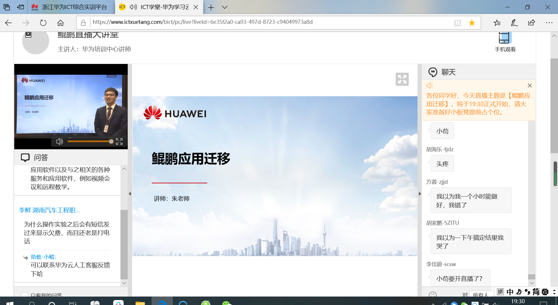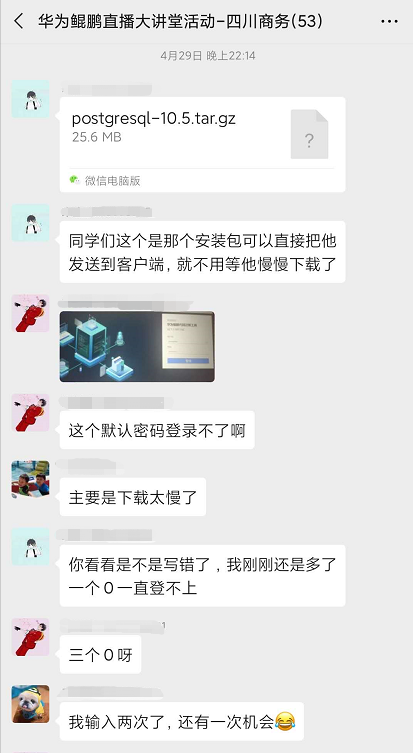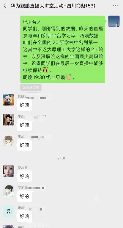 本次活动我们共选取了39名优秀学子偕同10名专业教师共同参与直播大讲堂的学习。从4月22日晚19:30起到4月29日21:00结束,课程为期8天,共举办4场鲲鹏深造直播讲堂。