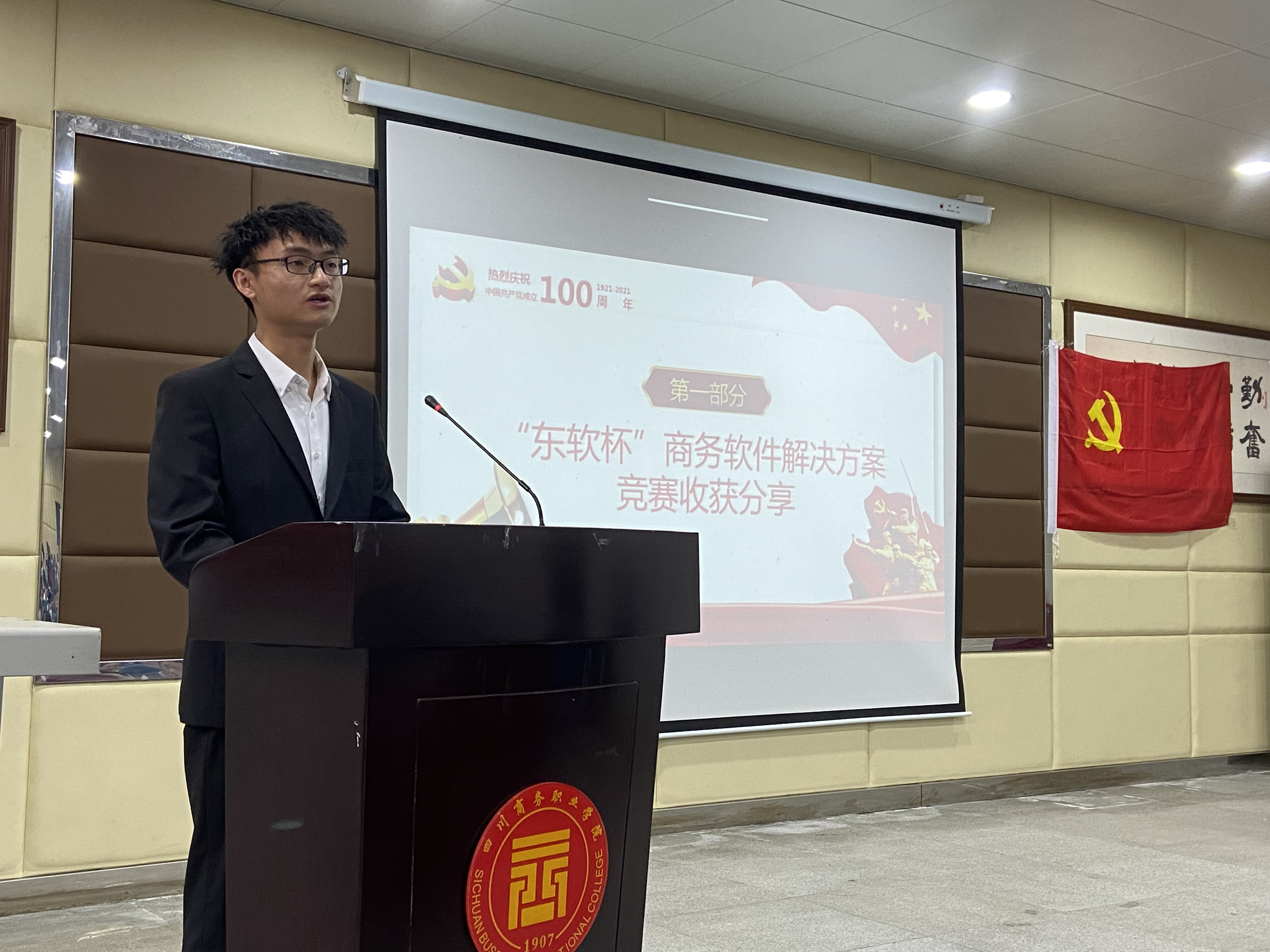 随后,伴随着悠扬的共青团团歌,2021寒假总结表彰活动拉开帷幕。参加“成渝地区双城经济圈职业院校赛证融通邀请赛商务软件解决方案赛项一等奖”获得者蒋天俊同学分享了参赛的心路历程,他将满腔的学习热情化为报国之行,克服时间紧、内容新等重重困难,最终在竞赛中斩获佳绩。社会实践参与者祝睿和吴波同学也分别分享了他们在寒假期间的社区志愿服务收获和社会实践心得。交流分享结束后,各专业教师为我系“八个一”寒假主题活动的优秀作品获奖者颁奖。随后,孙蓉老师、刘磊老师以“创业创新永无止境”和“专业学习永不停歇”为主题,分别从大学生创业创新所需的思想准备、能力储备和专业学习提升规范化、创新化要求等方面给同学们指导,助力同学们在新学期及早认清定位、谋划路径,以精益求精、百折不挠的工匠精神,树立良好的学习观、成才观,为承担青年责任积蓄力量。