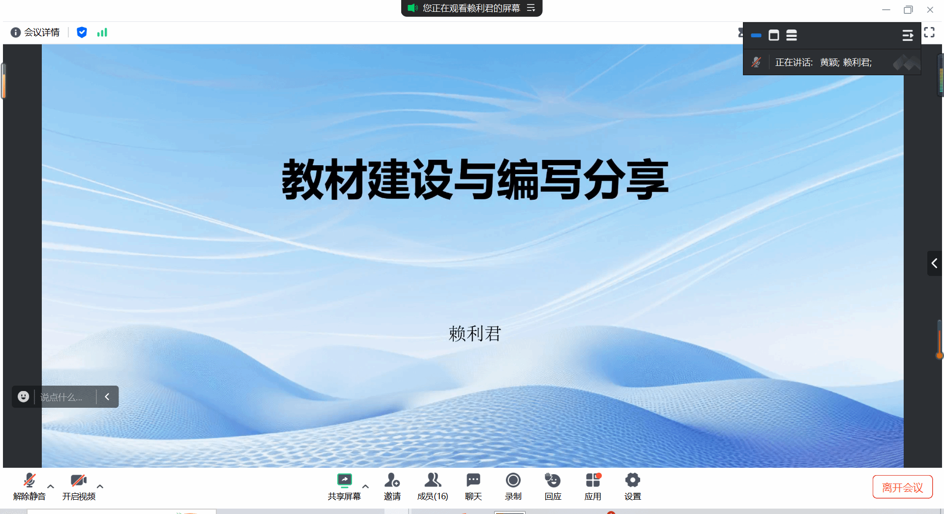 赖利君老师从多个角度探讨了教材建设与编写的意义、原则、流程、技巧以及特色与创新。她详细阐述了教材建设对于提高教学质量、促进学生发展的重要性,并强调了教材编写过程中的规范性和创新性。赖老师的分享为教师们提供了教材编写的重要参考。