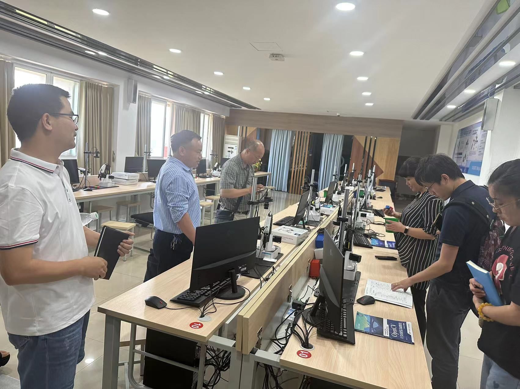 会后,在教研室负责人余海的引领下,双方共同参观了人工智能实训室,使大家对实训室的建设和管理有了更为直观的了解。