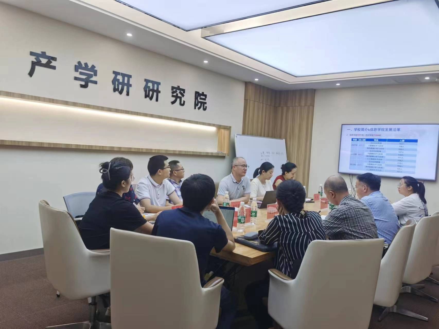 李建军介绍了信息学院在教育教学、科研创新、岗课赛证融合等多方面的实践与成果。他详细阐述了该院专业群的建设思路,特别是在大数据技术和人工智能等前沿领域的教育教学新体系、新思路。随后,双方进行了深入的探讨交流。在课程体系改革方面,双方分享了各自在课程设置、实践教学等方面的做法和经验;在课证融合方面,双方探讨了如何将职业技能证书与课程学习相结合,提高学生的职业竞争力;在校企合作方面,双方就如何加强企业参与、实现资源共享、共同育人等问题进行了热烈讨论。