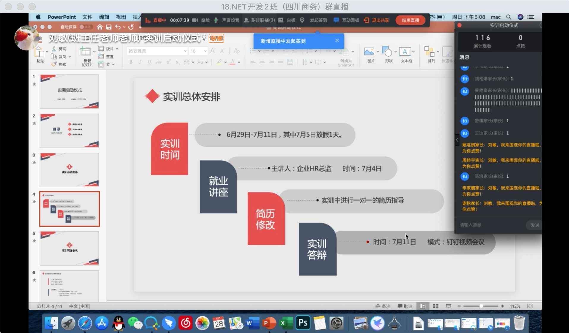 此外,为帮助同学们快速适应职业岗位需要,树立求职就业信心,提升职场竞争力,企业校企对接部老师在实训期间开展学生一对一就业访谈工作及一对一简历指导工作,同时还特邀四川升博信息科技副总经理唐柠老师通过钉钉多群联播的形式召开“未来正向我们走来”就业专题讲座,分析疫情当下应届毕业生的就业形势、讲解求职技巧、传授职场新人如何快速通过试用期等。在唐老师幽默风趣的职业指导下,同学们主动参与性较高,互动良好,收获颇丰。