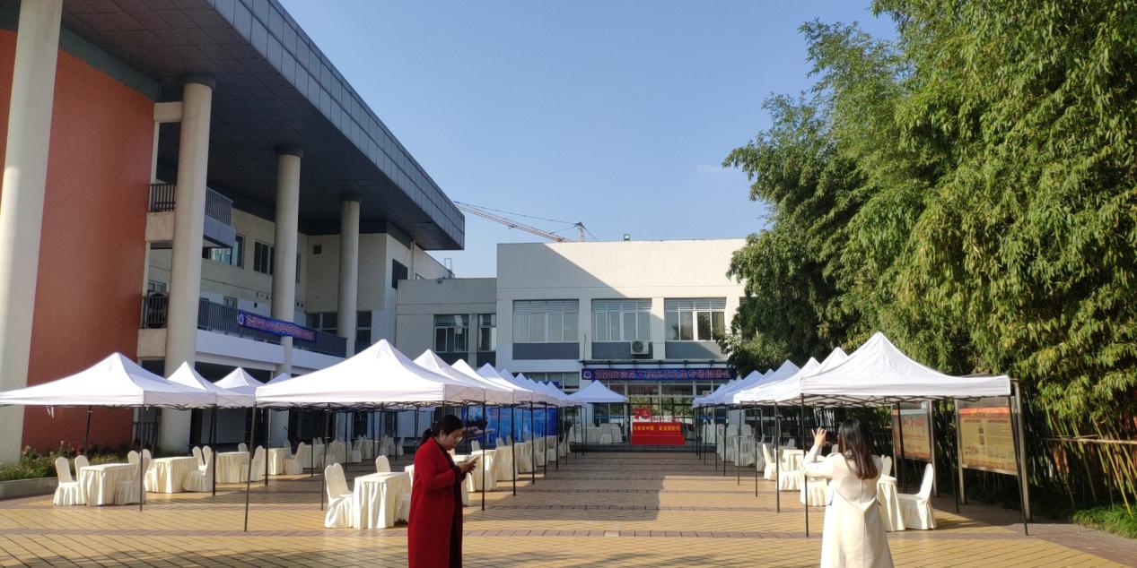 招聘会现场经过老师们的精心布置,在阳光的照射下显得格外精致,俗话说:不打无准备的仗;我们老师和同学都已做好了十足的准备,迎接即将到来的实习企业。